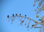 I woke up to what sounded like thousands of birds singing outside this morning. We are in what seems to be a desert, not much in the way of green except for the artificially created farmland. But there are so many birds here! Maybe I am too critical of the Central Valley. Maybe it is healthy. I heard these birds and when I was walking the dogs I looked up and saw two then three then four and five on a branch. They were flitting around like nervous birds do, but I must have snapped the picture at just the right moment because they look like they are posing.