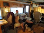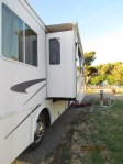 Most newer RV’s have what’s called “slideouts” these days. Some have three or four. Some even have slide-ups which gives their lucky owners a second story to their home on the road. But those are mostly for famous people. We only have one slideout and that is enough. I appreciate the extra four feet of space for my “living room” and “dining room.” It works by simply pushing a button. How cool is that?