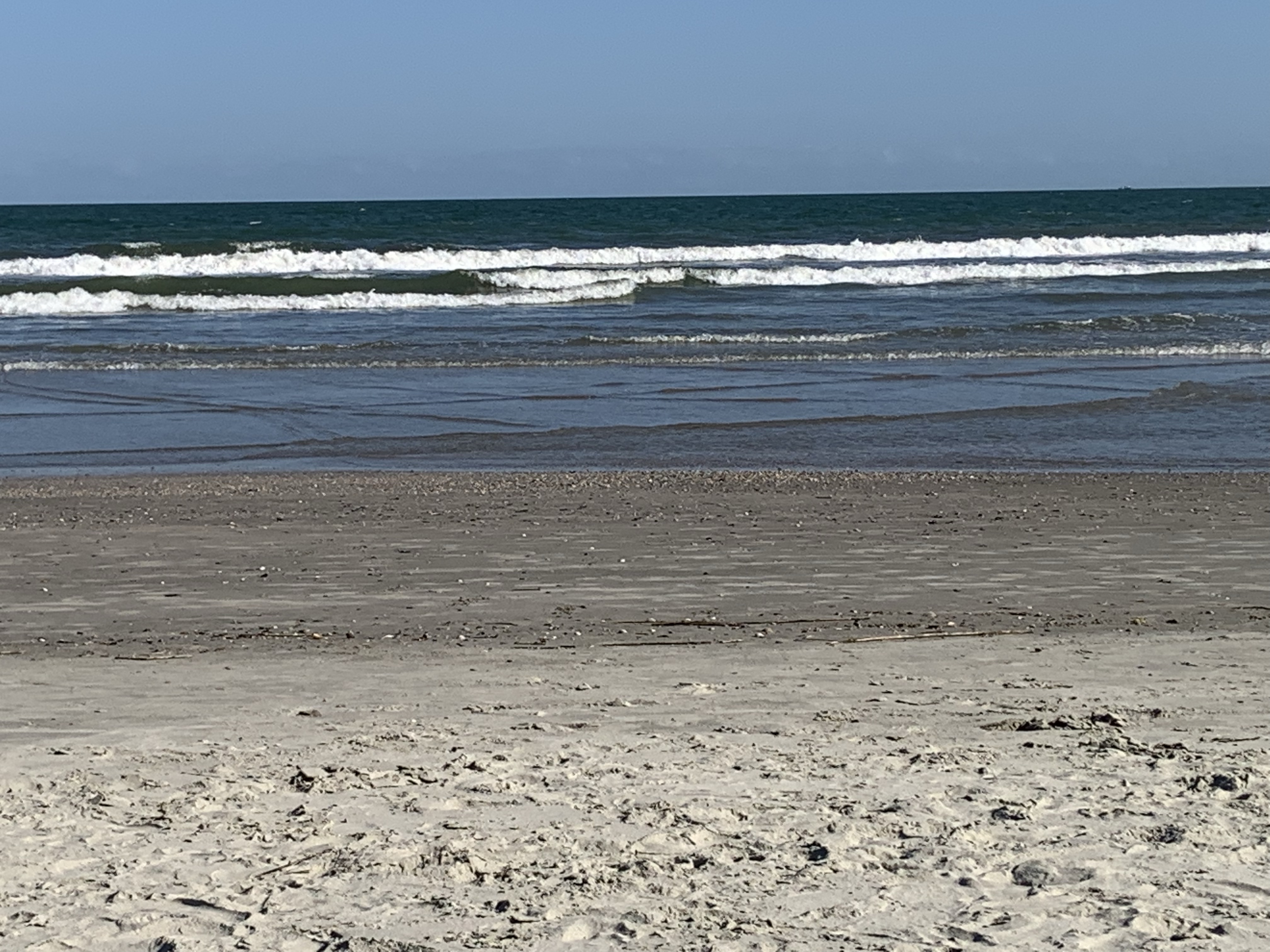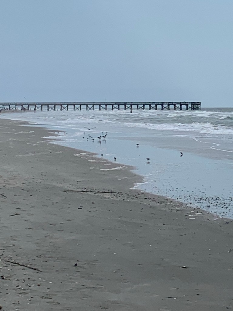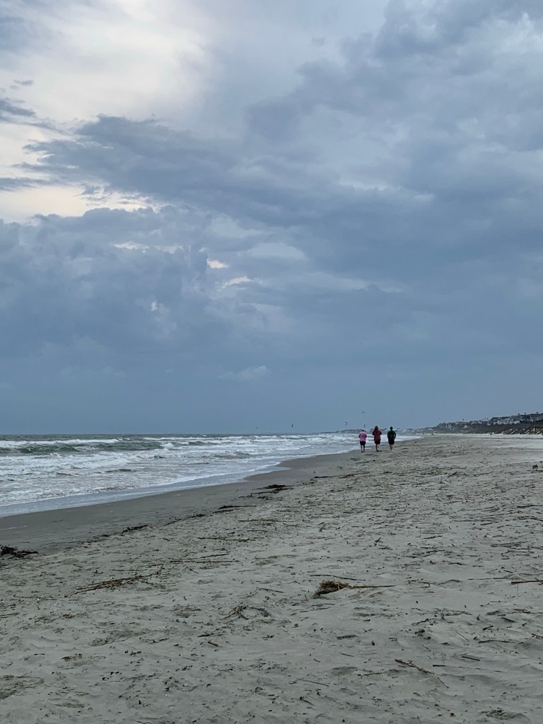 We saved these last few moments at the beach for our final evening since we wanted to avoid crowds and the heat of the day. Well, there weren’t many humans out because it was pretty windy, and cloudy, and cold. And a storm was coming. But we dragged our chairs down there anyway for one more dose of ocean air and rhythmic waves. We sat for a few minutes by the water and I gathered a few more shells that I don’t need, until the clouds started seriously coming our way.