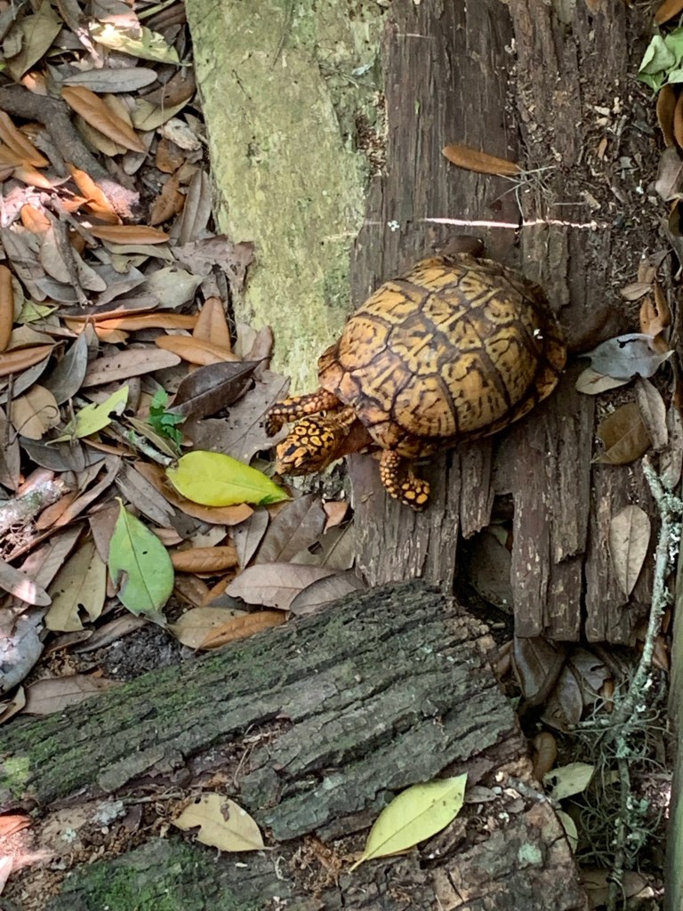 So we rode on this wagon/train thingy with a very enthusiastic guide who knew a lot of trivia about this or that animal. For example, did you know that turtles can breathe out of their butts? Well, it’s true. She explained it but I was busy taking pictures and didn’t listen. Something about a different form of hibernation where their metabolism slows down and the only air they need comes in and out of their rear ends. (see reconnectwithnature.org for more details if you’re interested.) A few minutes later I did hear her say that red tail hawks can catch mice so easily because they see in infrared and mice “relieve themselves” (pee) while running from place to place. Messy little creatures, huh? So, their urine creates a fluorescent trail which the birds follow and grab a quick meal. There was a lot of potty talk.