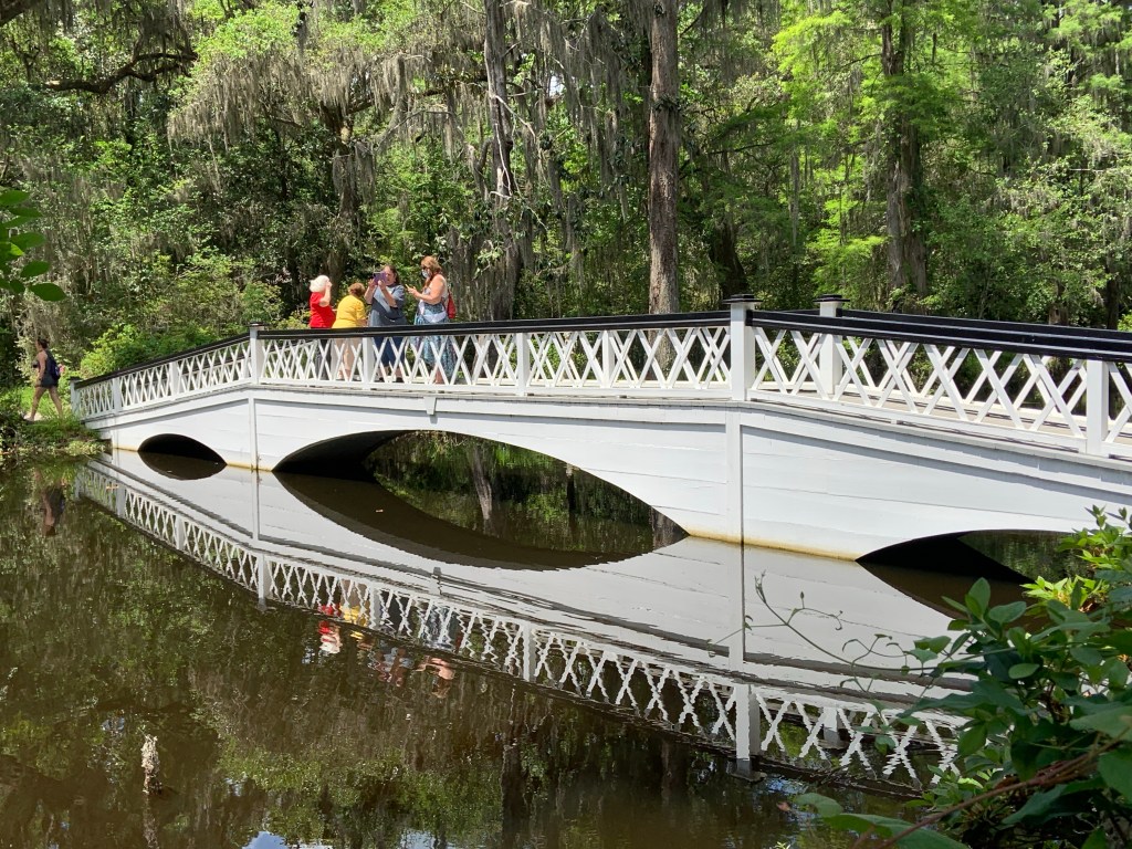 There is a “main house” but it was under construction and probably looked like a lot of other fancy southern aristocrats’ homes that we’ve seen more times than necessary. Then there was the pretty white bridge where everyone who wants a selfie goes to pose. Nice bridge. Sorry, no selfie. Just a few older women trying to figure out how to take a selfie.